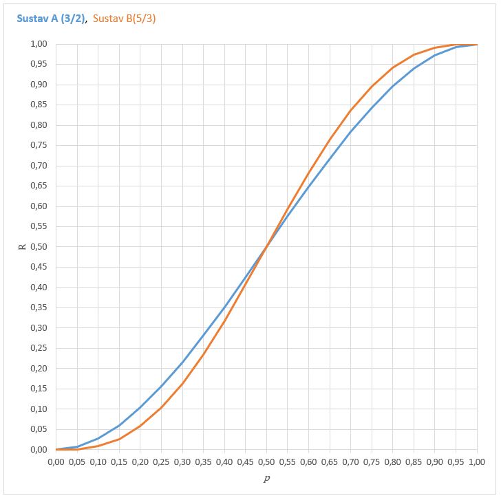 ![Rendered by QuickLaTeX.com \[ p < \frac{1}{2} \rightarrow (1 - 2 p) > 0 \rightarrow R_A - R_B > 0 \rightarrow \text{A je pouzdaniji} \] \[ p = \frac{1}{2} \rightarrow (1 - 2 p) = 0 \rightarrow R_A - R_B = 0 \rightarrow \text{jednako pouzdani} \] \[ p > \frac{1}{2} \rightarrow (1 - 2 p) < 0 \rightarrow R_A - R_B < 0 \rightarrow \text{B je pouzdaniji} \]](https://lanovic.eu/wp-content/ql-cache/quicklatex.com-2d1bba50fbcfb21347b5ac746dd88a5a_l3.png)